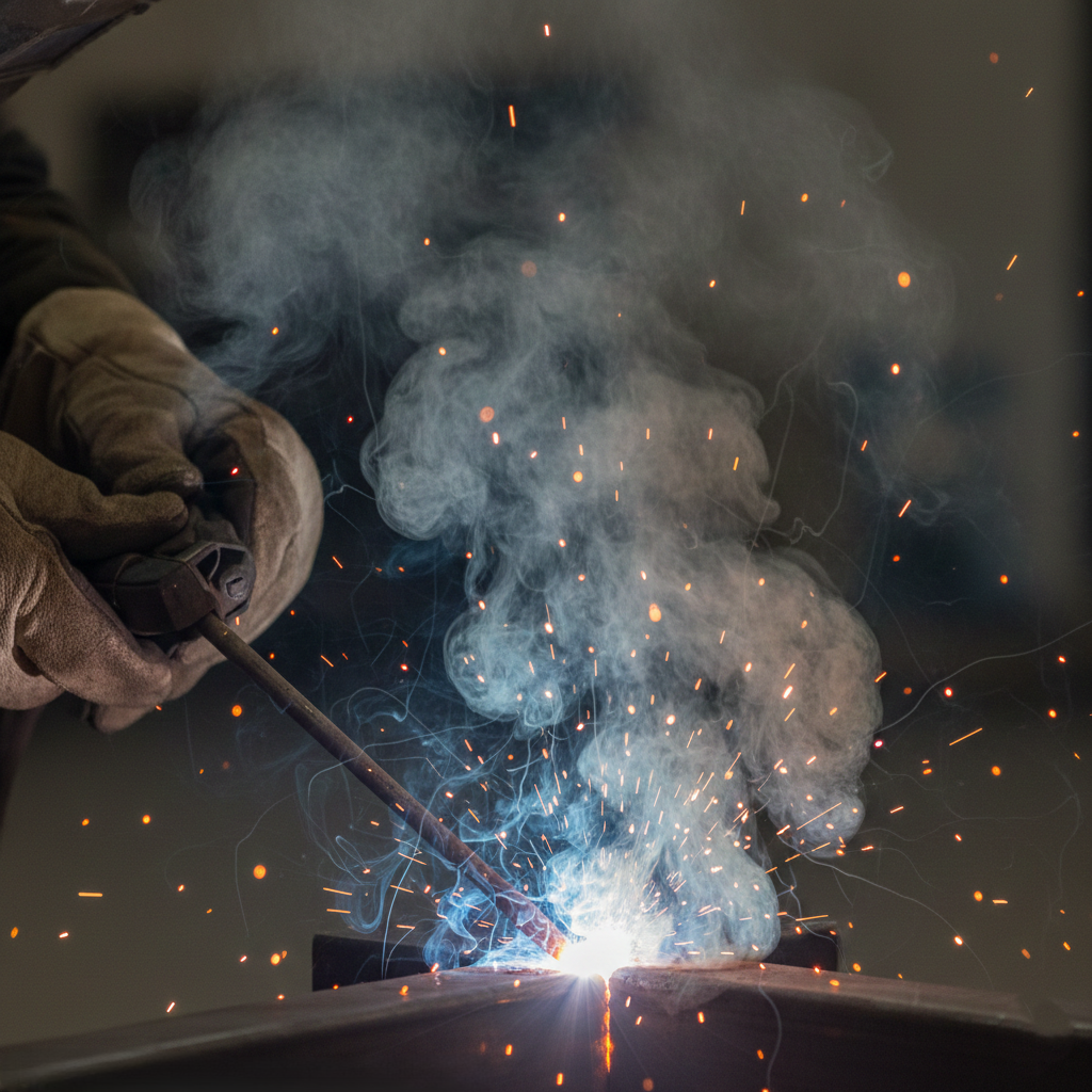 Fumes and dust produced during metal welding, consisting of metal particles, oxides and gases generated by the thermal process.