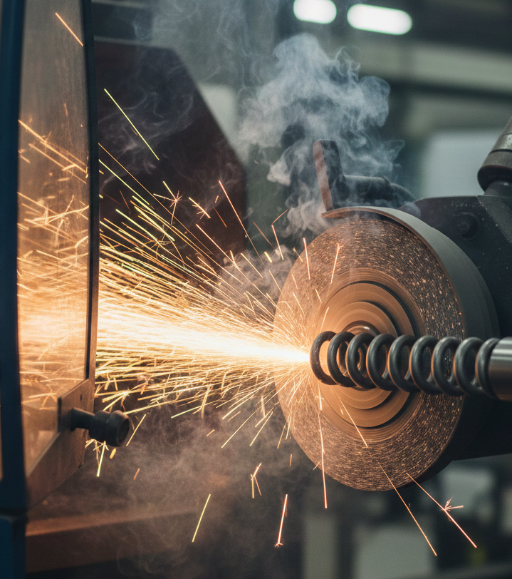 Grinding and hardening of springs generate metal dust and oily vapours. Targeted filtration systems manage both emissions, protecting product quality and operational safety.