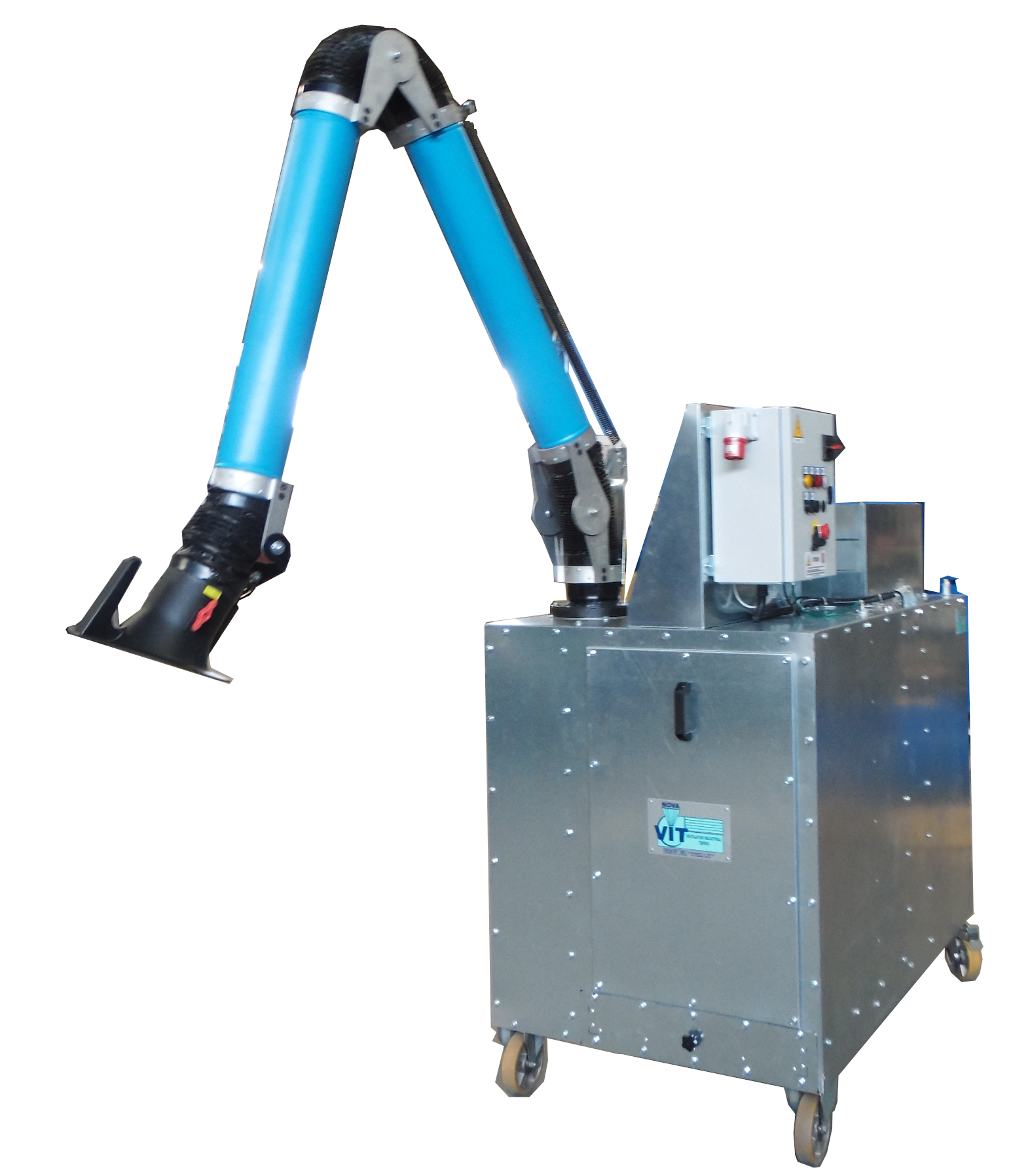 The NOVA SERIES BASE MK2 Suction Arm is designed for the localised suction of airborne pollutants such as fumes, dusts, vapours and oily mists directly to the emission source. The articulated structure allows you to precisely orient the collection point, increasing the efficiency of extraction without interfering with the operator or processing. It can be installed with wall mounting by bracket or integrated on a trolley filter, making the solution versatile for different production environments. The modular and robust design allows easy and stable movements, while the compatibility with different connection diameters favours integration with existing industrial ventilation and suction systems. This suction arm is ideal for applications where it is necessary to collect emissions at the source, improving air quality and operator safety.