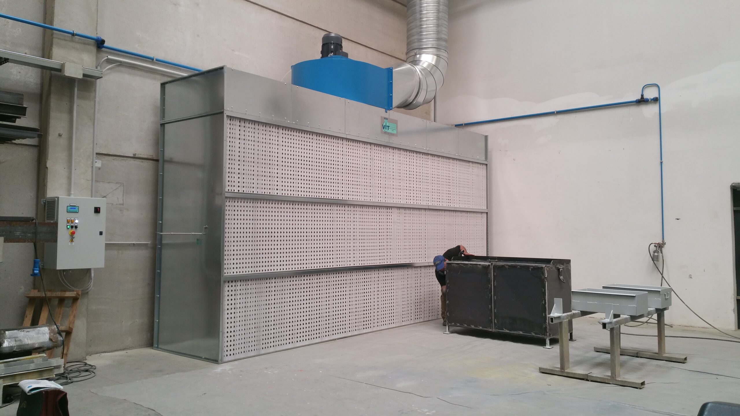 Nova Vit designs and manufactures dry industrial spray booths, engineered to ensure effective abatement of dust and paint pigments generated during painting processes. The Top Dry Series, equipped with activated carbon filters, helps maintain high air quality and safety standards in the workplace, in full compliance with current regulations.