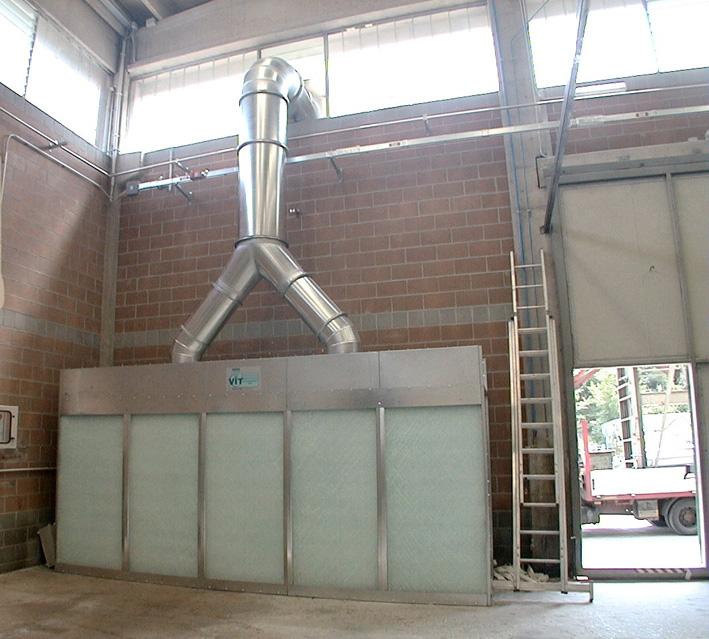 The Painting booth and wall is designed to capture dust and vapors through a modular filtration system, using selected filter elements to ensure operational continuity. The possible presence of multiple filtration stages is defined based on the particle size and concentration of the contaminants.