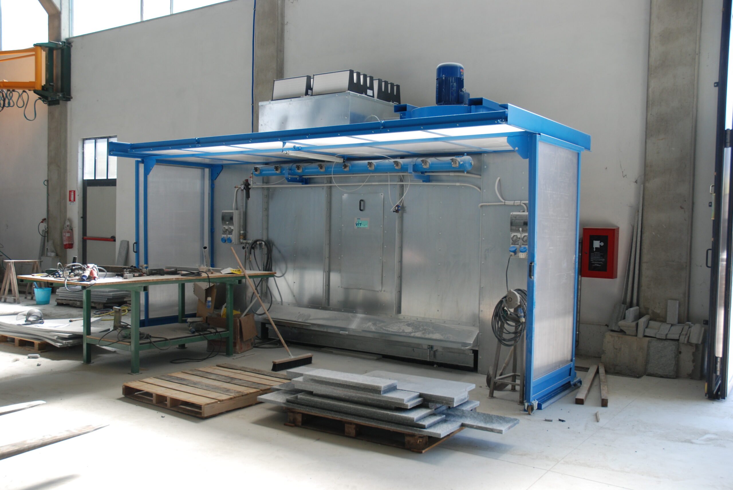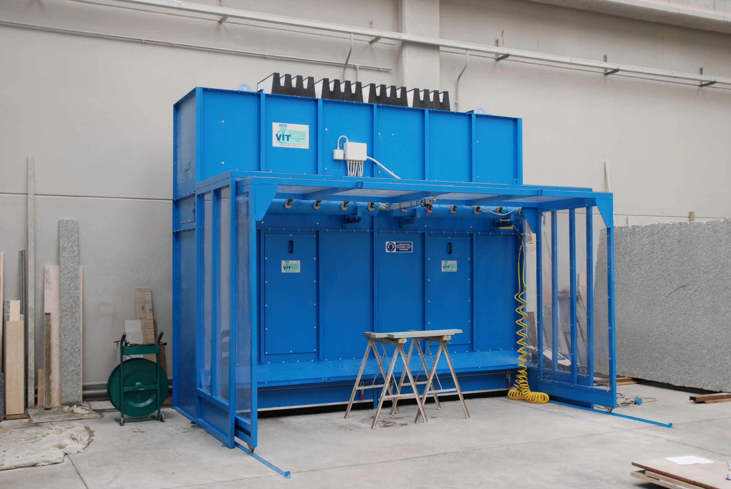 Extraction walls provide an effective and reliable solution for the removal of dust generated during grinding, cutting, and polishing operations involving marble, stone, granite, and resins. The Wall Duster Series has been developed to meet the demands of the most challenging production environments, ensuring high filtration performance and a significant improvement in workplace air quality.