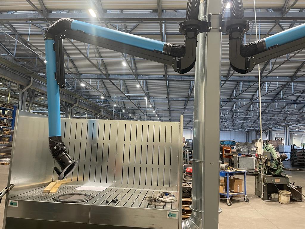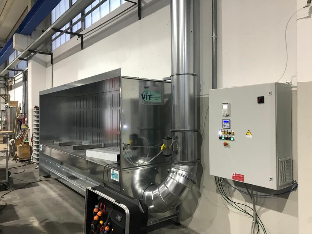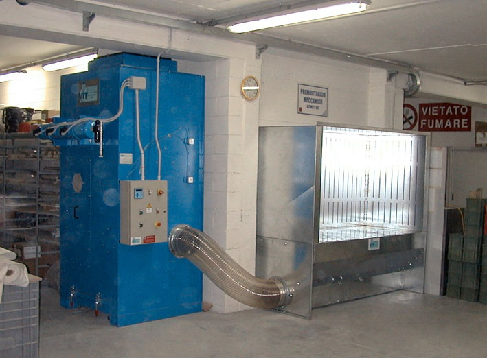 I banchi sono dotati di prefiltri integrati direttamente nella struttura, mentre su richiesta è possibile abbinarli a un filtro a cartucce verticali con sistema di pulizia pulse jet, opportunamente dimensionato per garantire un’aspirazione ottimale e prestazioni elevate.